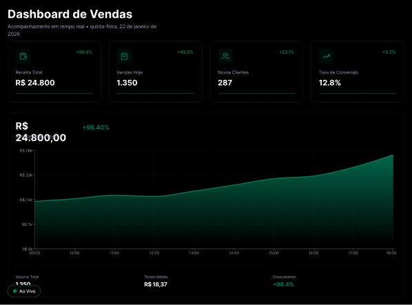 Analisamos o negócio por completo: processo comercial, funil de vendas, conversões e o real impacto do marketing no faturamento. Nada de métricas de vaidade — o foco é resultado.